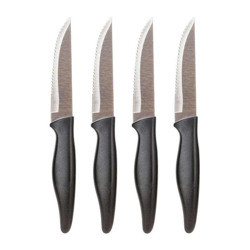 Bij een biefstuk hoort natuurlijk een echt steakmes. Deze set van 4 messen zijn super handig. Ze zijn gemaakt van RVS en hebben een zwart handvat. Onmisbaar in de keuken!