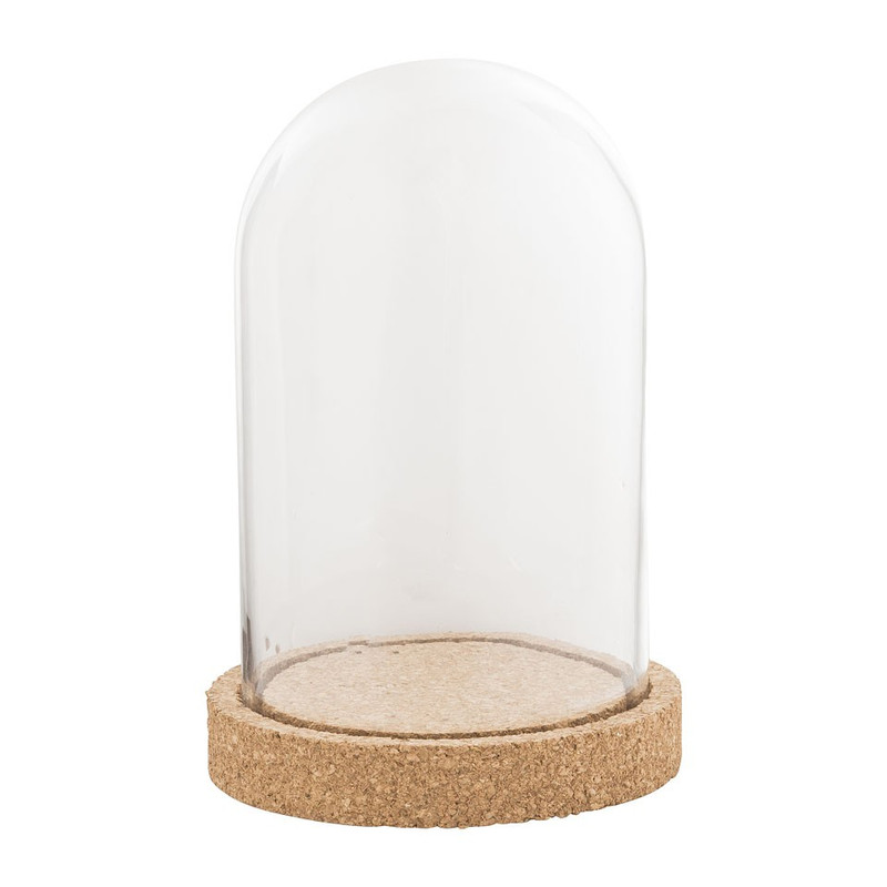 Hippe stolp met kurken plateau. Perfect om jouw mooiste decoraties in te showen. Zet er bijvoorbeeld een lichtsnoertje, een klein plantje of een kaars in! Er zijn allerlei manieren om deze stolp er leuk uit te laten zien. Met een stolp kun je lekker veel varieren in je interieur. Leuk!