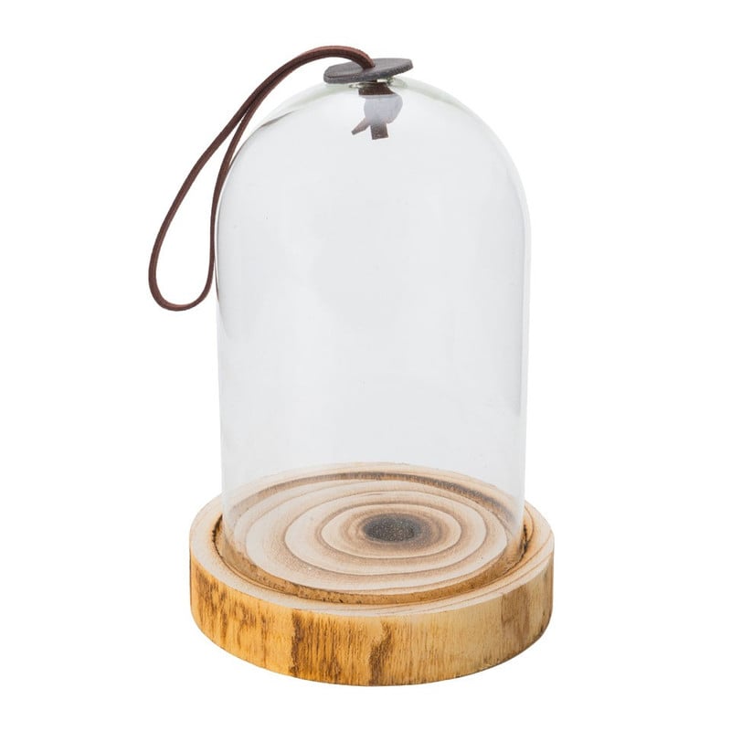Mooie glazen stolp met robuust houten plateau en leren detail. Met deze stolp op een houten plateau kun je op een gemakkelijke manier een gezellige sfeer creëren in huis. Zet er bijvoorbeeld een lichtsnoertje, een klein plantje of een kaars in! Er zijn allerlei manieren om deze stolp er leuk uit te laten zien.