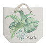 Waan je in de tropische sferen met deze vrolijke strandtas. Deze tas kun je zowel gebruiken om mee naar het strand te nemen of om lekker te gaan picknicken. Ook voor de alledaagse boodschappen is het een handig formaat. De tas is gemaakt van papier, heeft een witte kleur en er staat een groen blad op de voorkant met de tekst 'Tropic'. De hengsels zijn wit van kleur en zien eruit als een dik touw. Het is een echte eyecatcher waar jij goed mee voor de dag komt! Een echte must-have voor de zomer.