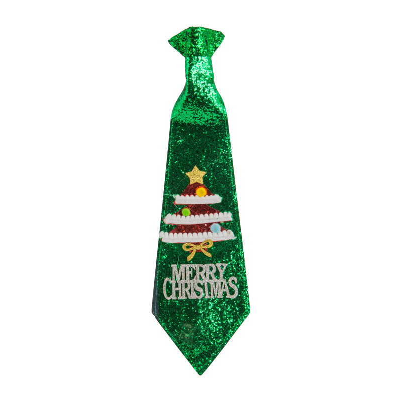 Jij wilt toch ook helemaal in kerststijl arriveren tijdens deze kerstdagen. Met deze stropdas met groene glitters en de tekst Merry Christmas maak jij ongetwijfeld indruk.