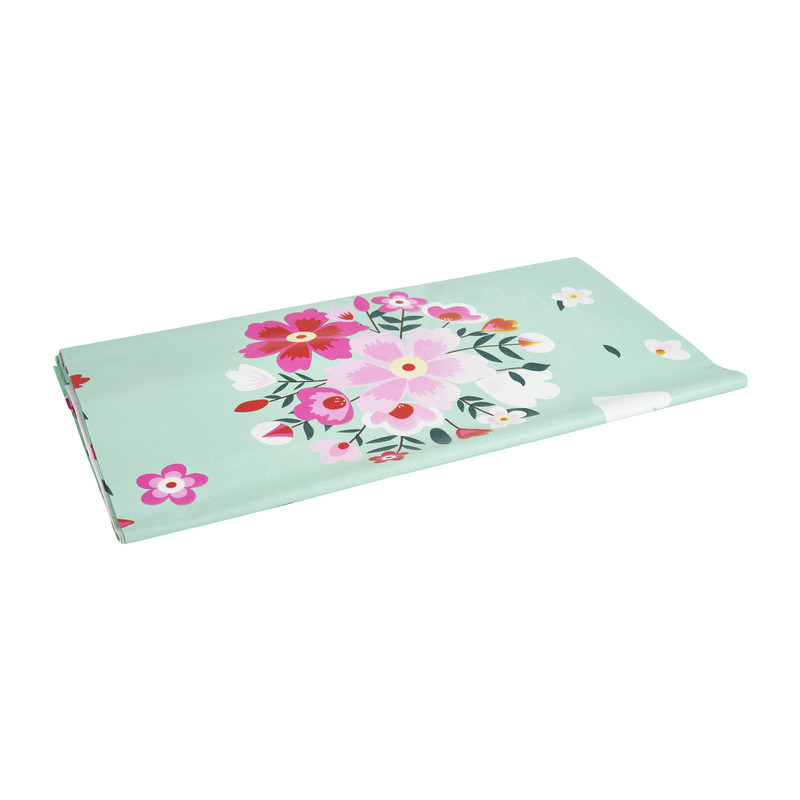 Heb jij binnenkort een feestje of bbq? Haal dan dit papieren tafelkleed in huis. Het beschermt je tafel en fleurt de boel direct op. Het groene tafekleed is versierd met roze bloemen. Heerlijk kleurrijk en vrolijk! De afmeting is 138x220 cm.