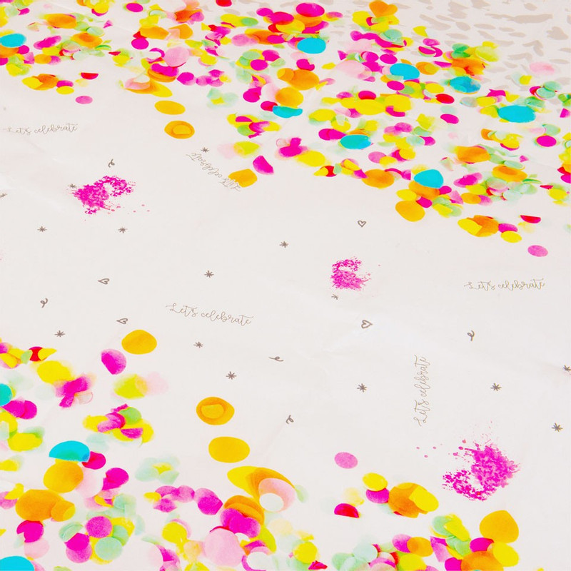 Dit tafelkleed is super feestelijk, dankzij de gekleurde stippen. Het kleed is 138x220 cm groot en gemaakt van papier. Super leuk om het tafelkleed te combineren met ander wegwerpservies uit deze serie.