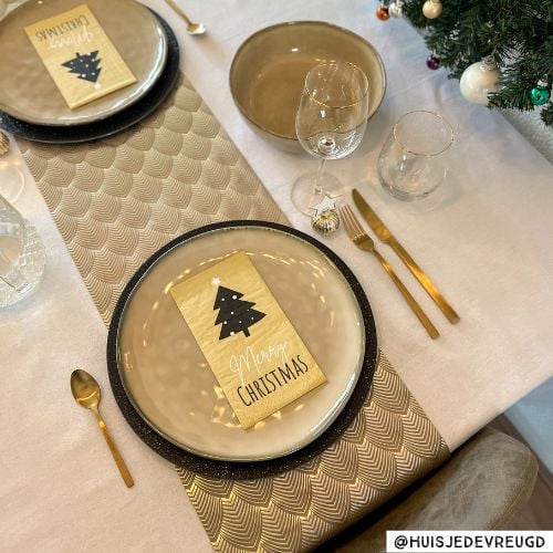 Eenvoudig een sprankelde eettafel creëren voor de kerstdagen? Dat doe je met deze stoffen rol waarvan je mooie tafellopers maakt. Uiteraard ook te gebruiken als decoratiemateriaal.