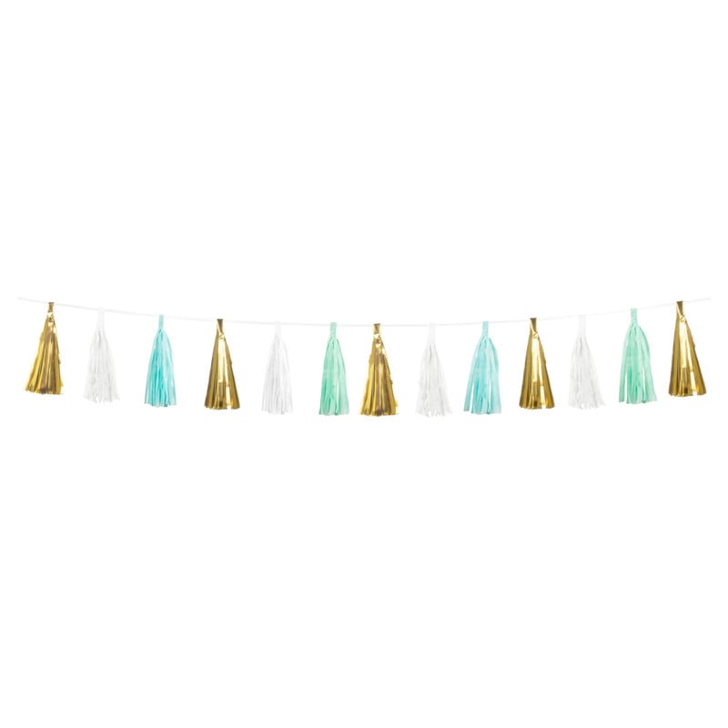 Deze feestelijke slinger met tassels lijkt zo uit de zee te komen! Hang 'm boven de feesttafel of langs de muur en geef je feestje instant mermaid vibes.