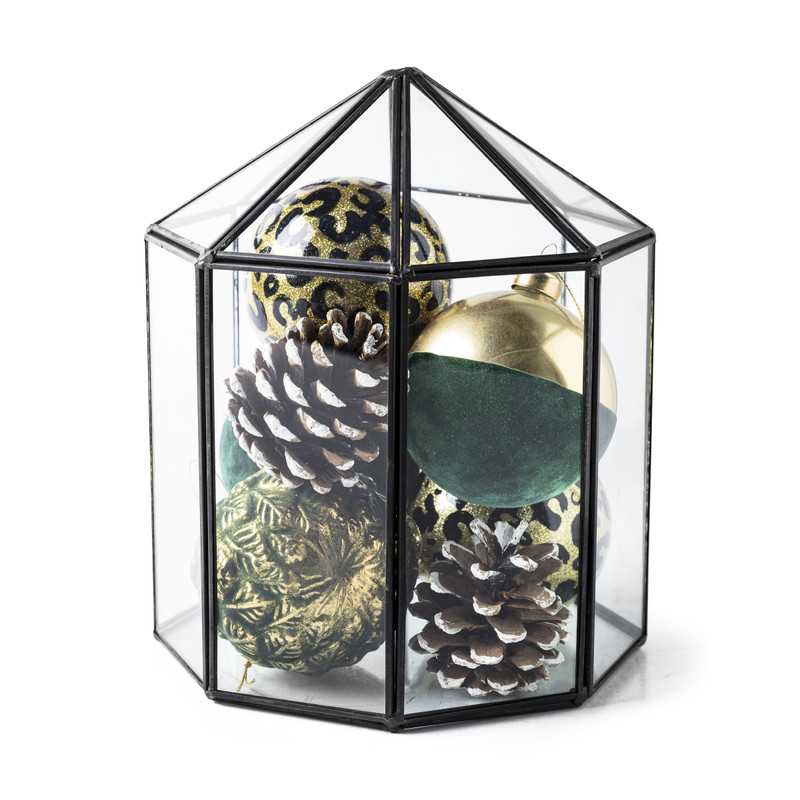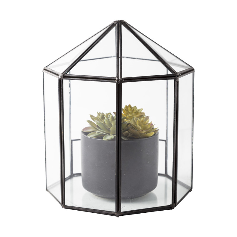 Je mooiste plantje, beeldje of andere accessoire zet je in dit glazen terrarium. Zo komt het nog beter tot zijn recht! Het terrarium is gemaakt van glas en metaal en is open aan de zijkant. Het terrarium is 19,5x18x23 cm (LxBxH).
