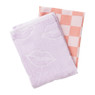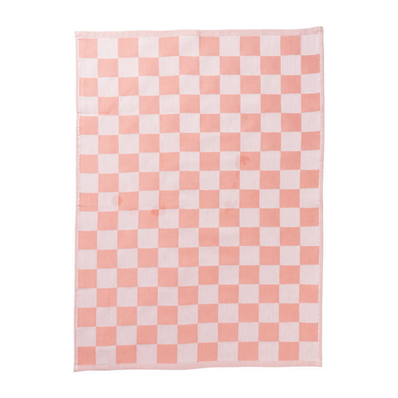 Theedoek blokjes - lila/koraal - 50x70 cm