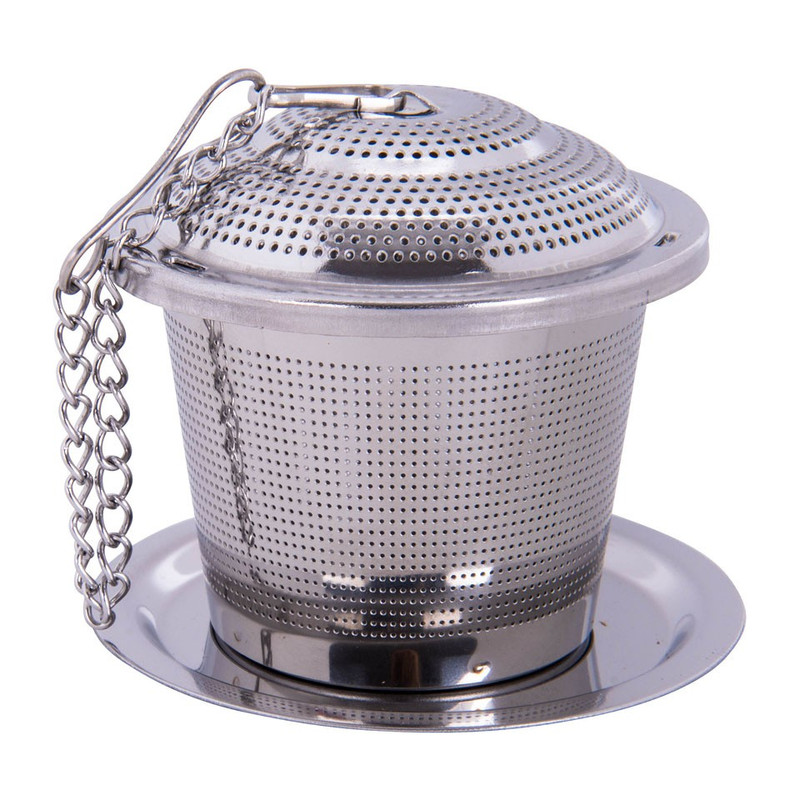 Zet een kop van jouw favoriete thee met deze luxe theefilter inclusief aflegbakje. Deze filter is fijnmazig waardoor er geen stukjes van de theeblaadjes in jouw thee terecht komen. Ideaal met een klein kettinkje eraan om aan je glas te hangen terwijl de thee aan het trekken is.