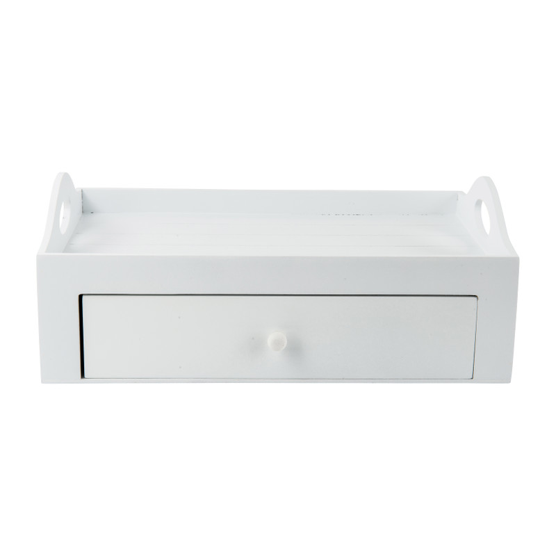 Theekistje+dienblad - wit - 30x20x11,5 cm