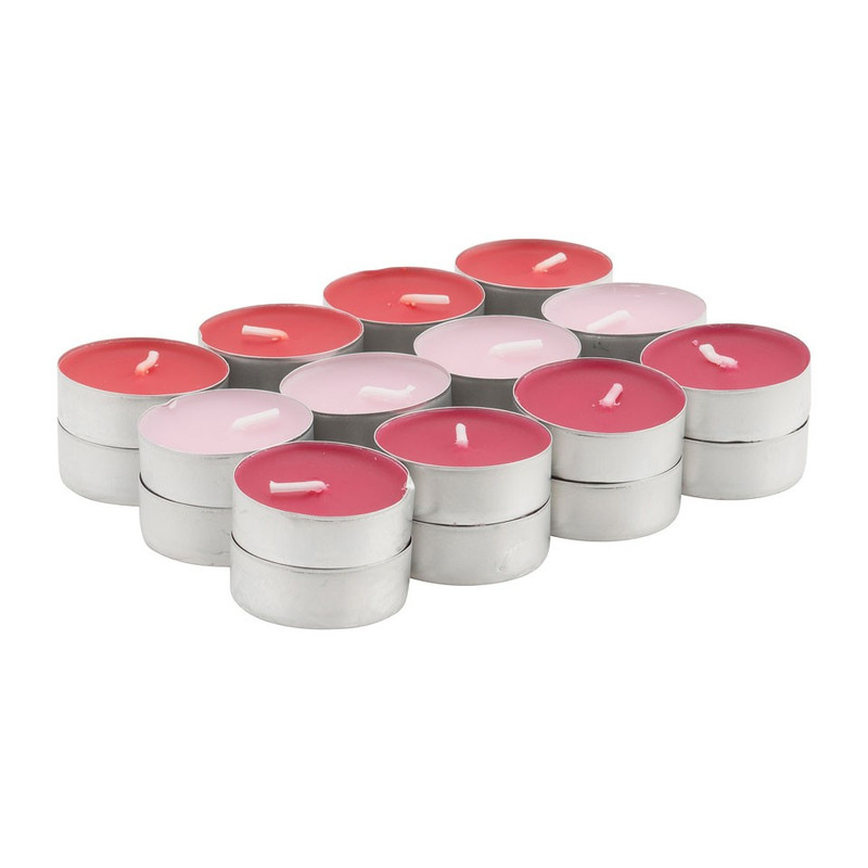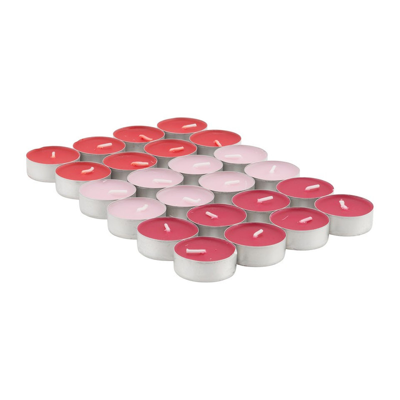 24 heerlijke geurende kaarsjes voor een relaxte sfeer in huis. De kaarsjes ruiken allemaal naar mulberry en zijn er in drie verschillende roze tinten. Heerlijk als je een avondje aan het relaxen bent. Ook wanneer je de kaarsjes niet aansteekt ruik je de geur. De theelichtjes zijn handig om bijvoorbeeld het toilet of de badkamer extra te verfrissen. Je kunt de theelichten los neerzetten of in een houder plaatsen door de handige standaard afmeting van het theelicht.