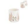 Maak het gezellig tijdens kerst met deze stijlvolle theelichthouder. Aan beide zijden zit een opening in de vorm van een huisje. Dit geeft een leuk effect wanneer je er een kaarsje in aansteekt. Om het huisje heen is een bos afgebeeld om het een sfeervolle uitstraling te geven.