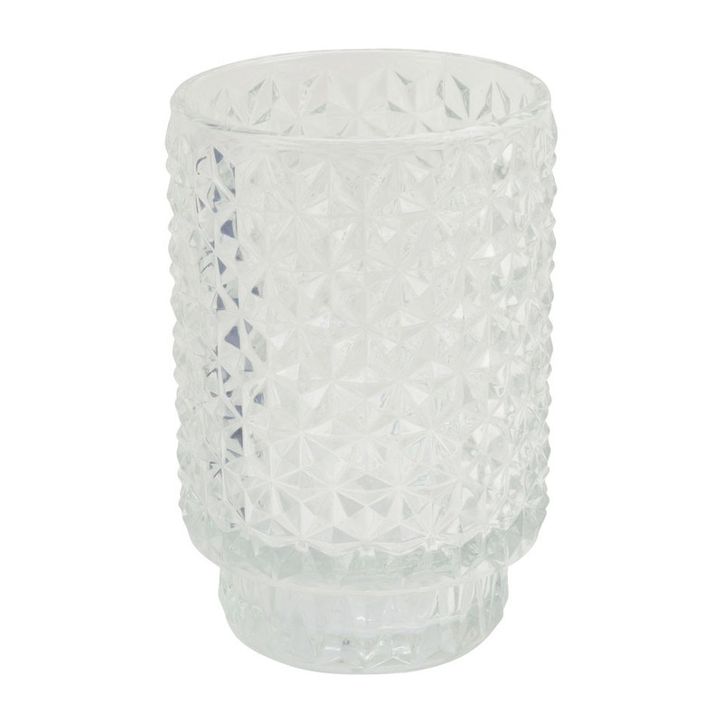 Theelichthouder diamant reliëf - transparant - 13x8.5 cm