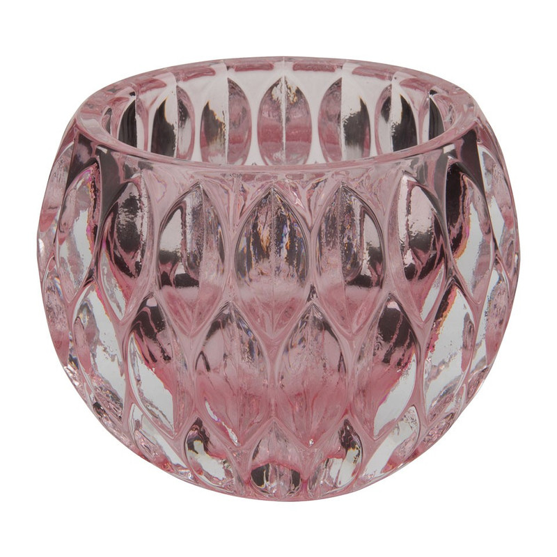 Breng sfeer in je huis of tuin met deze roze waxinelichthouder met grof reliëf. De waxinelichthouder is gemaakt van dik glas en is roze van kleur. Het licht van een brandend kaarsje schijnt sfeervol door het glas heen. De afmeting van de houder is 8x6 cm. Super leuk om de houder te combineren met nog meer kaarshouder voor een sfeervol effect.