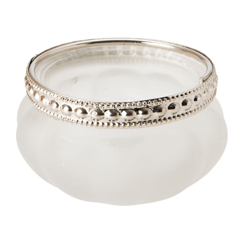 Theelichtjes brandend op tafel of een dressoir geeft altijd een gezellige sfeer. Met deze mooie glazen waxinelichthouder wordt het nog sfeervoller. De glazen waxinelichthouder heeft als extra decoratie een kleine metalen sierrand aan de bovenkant in een Marokkaanse stijl. De Maroc theelichthouder is verkrijgbaar in diverse kleuren. Zo kan je leuke kleurencombinaties maken.