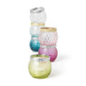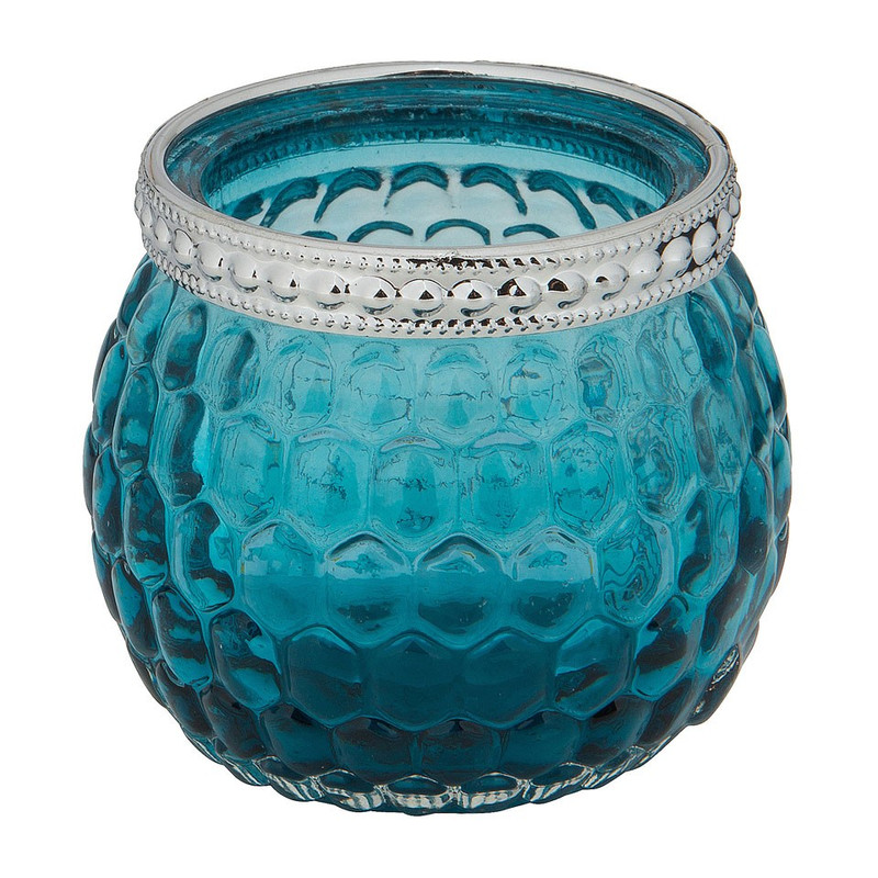 Gezellige theelichthouders in de kleuren blauw, groen en roze. Het branden van theelichtjes geeft altijd een gezellige sfeer. Met deze mooie glazen waxinelichthouder wordt het nog sfeervoller. De glazen waxinelichthouder heeft kleine rechthoekige decoratie op het glas en een kleine metalen sierrand aan de bovenkant. Deze theelichthouder is verkrijgbaar in diverse kleuren. Zo kan je leuke kleurencombinaties maken.