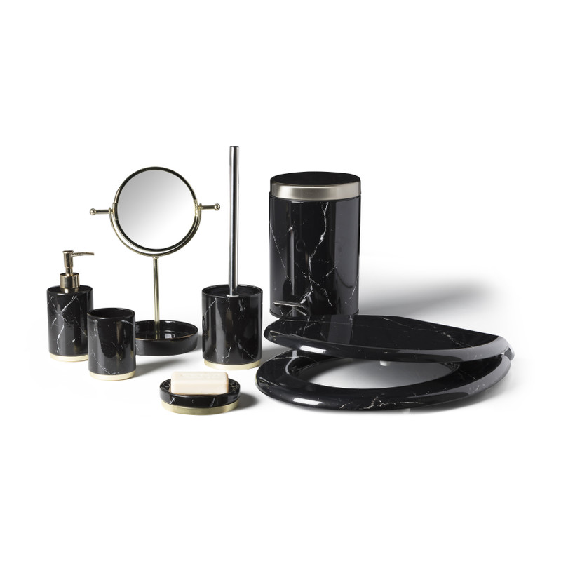 Bij Xenos hebben we we diverse badkamer accessoires met een zwarte marmer look en gouden details. Bijvoorbeeld een zeeppomp, douchegordijn of make-up spiegel. Want ook de badkamer en de kleinste kamer in het huis verdienen een trendy look. Bestel de items nu online bij Xenos.nl en geef jouw badkamer en/of toilet een mini make-over.