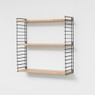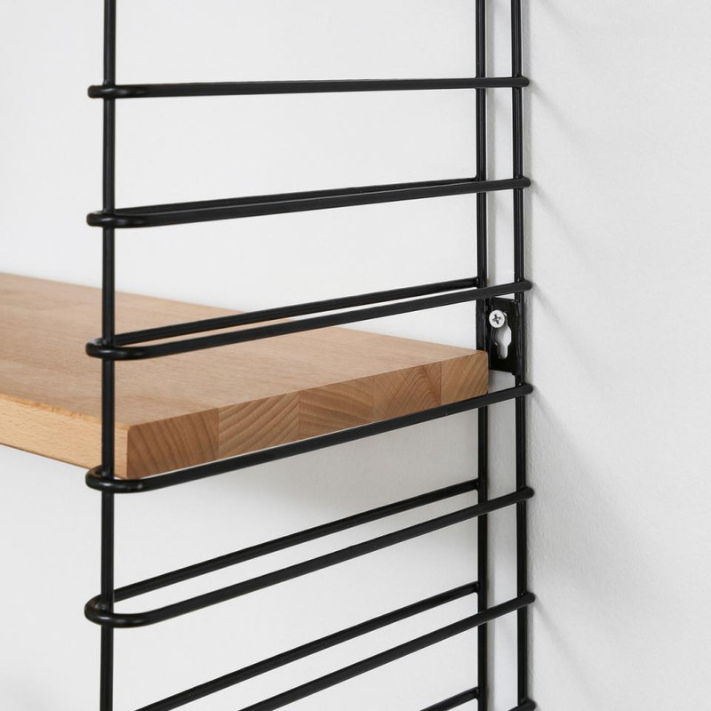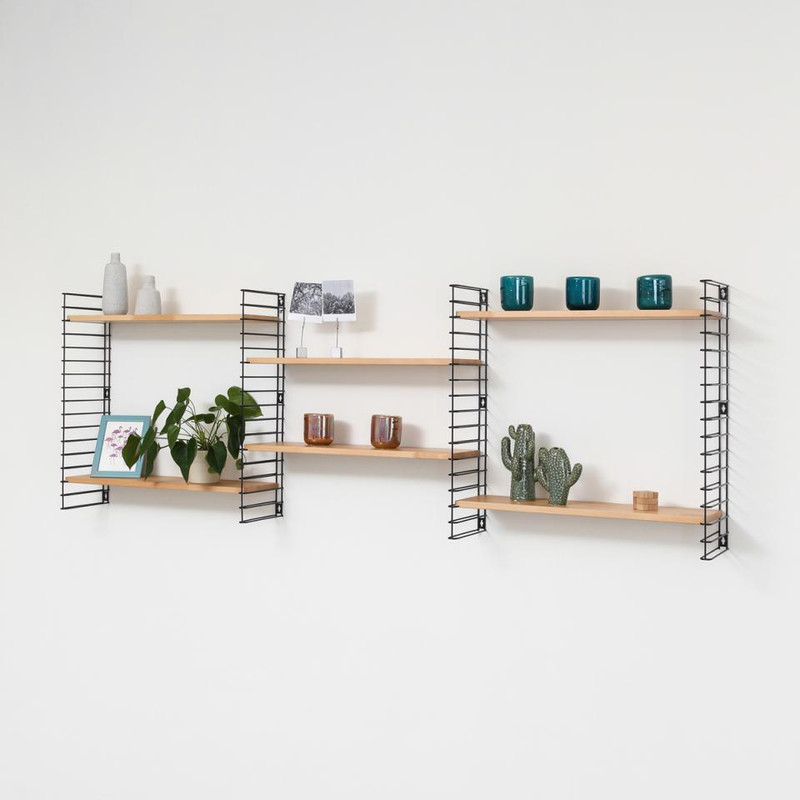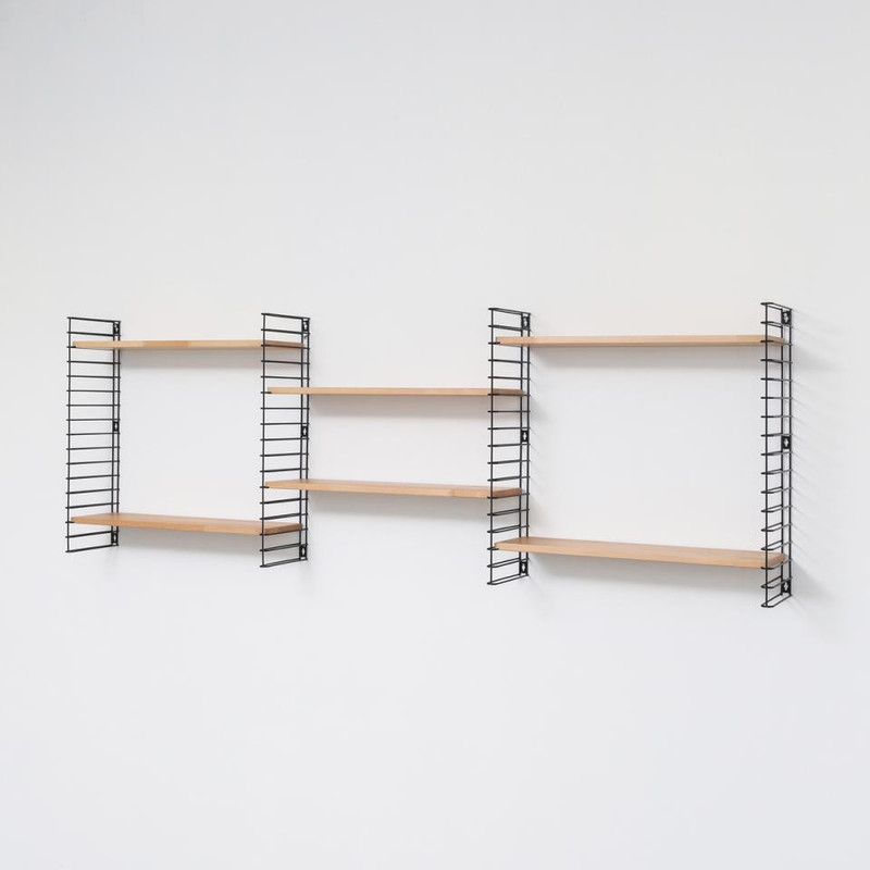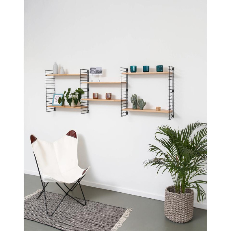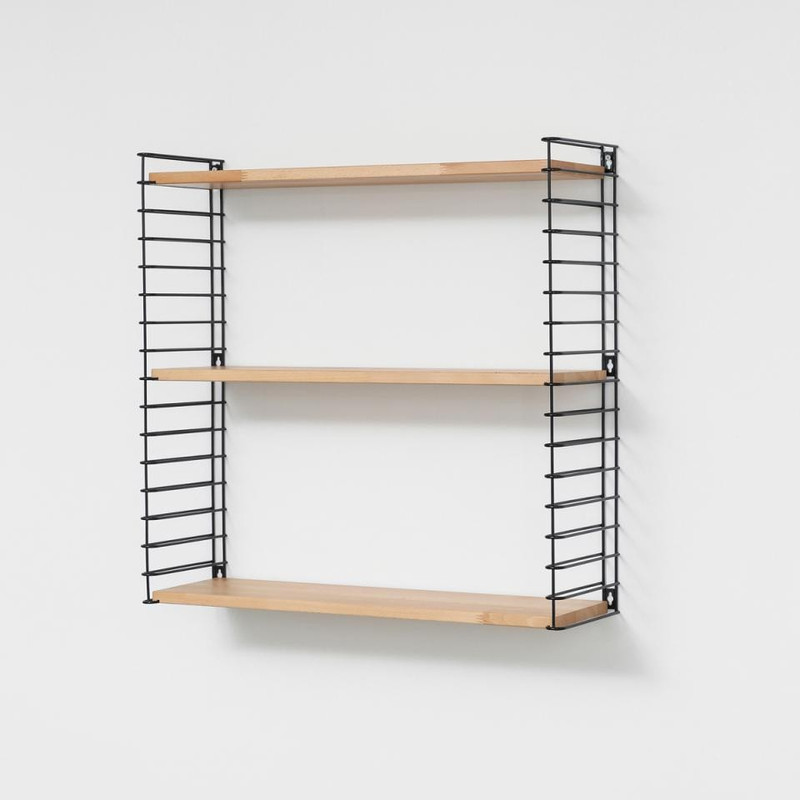 Het Tomado boekenrek heeft een originele vormgeving met 3 verstelbare stalen planken. De basisafmetingen zijn 70x21x68 cm maar dit rek is gemakkelijk horizontaal of verticaal uit te breiden. De witte planken zijn van hevea hout en zijsteunen zijn in metaal en kunnen elk tot 8 kg dragen. Eenvoudige wandmontage. Original design: Adriaan Dekker 1958.
