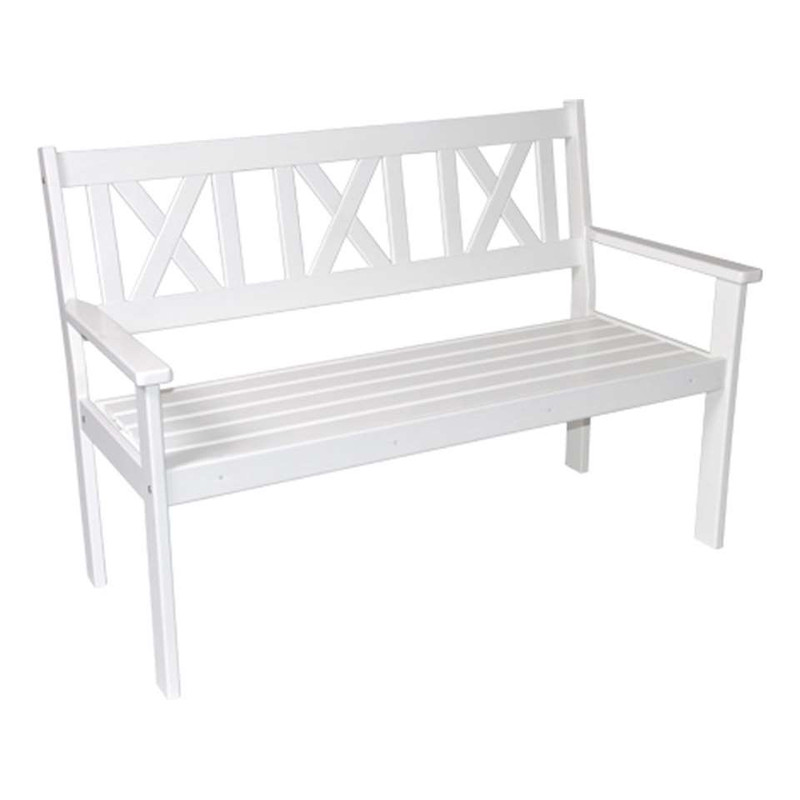 Met deze tuinbank op jouw terras of balkon is het gegarandeerd genieten geblazen! De tuinbank is wit van kleur en gemaakt van grenenhout. Het tuinbankje is voorzien van armleuningen. De bank is 129 cm lang, dit maakt 'm geschikt om met 2 personen op te zitten.