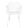 De stoel is gemaakt van kunststof en metaal en komt in een witte kleur.
