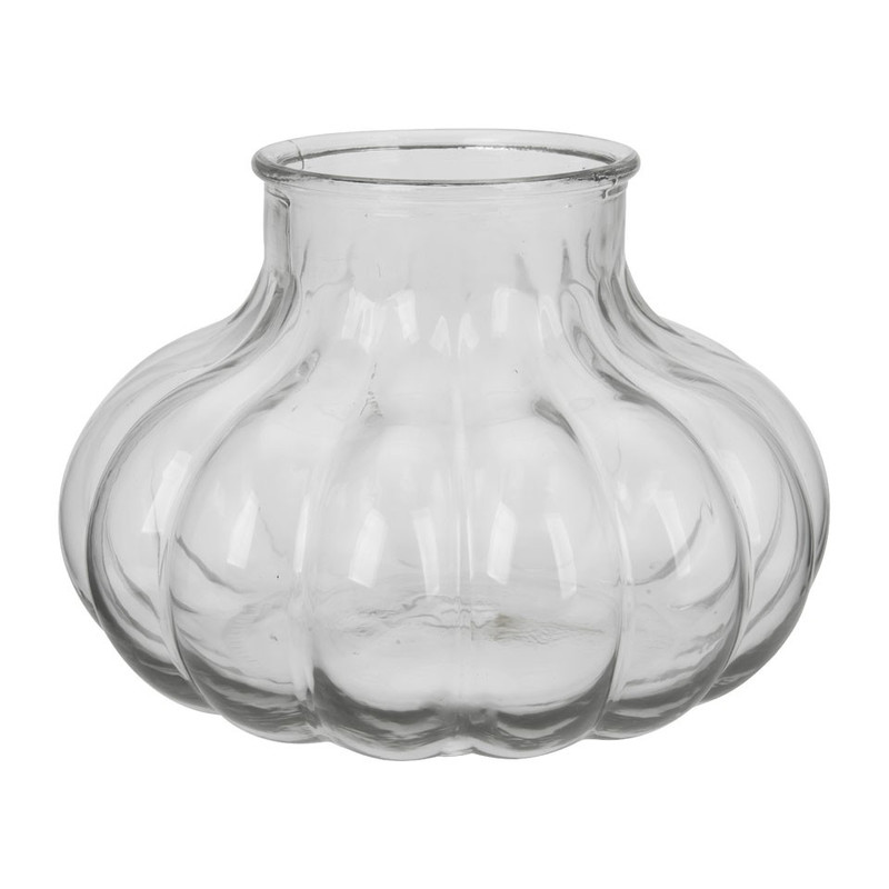 Met deze vaas haal je een echte eyecatcher in huis. De vaas heeft een bolle onderkant en is 18 cm hoog. Super leuk langs de tv of op een sokkel met mooie bloemen erin. Zo creëer je een echt spektakelstuk! De vaas is gemaakt van eco glas.