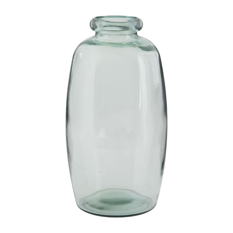 Fleur je huis op met deze middelgrote vaas, gemaakt van gerecycled glas. De vaas is een subtiele eyecatcher in jouw huis. Je kan 'm opvullen met takken, bloemen of juist helemaal niets. Het gerecyclede glas waarvan de vaas gemaakt is, geeft een speciale uitstraling. De vaas is erg stevig dankzij het dikke glas. De vaas heeft een hoogte van 35 cm en een diameter van ongeveer 17 cm. Erg leuk om de vaas te vullen met onze kunstbloemen.