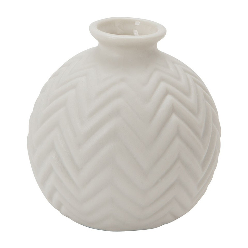 Je huis opfleuren met een klein bloemetje? Dan is dit bolvormige vaasje iets voor jou. Het vaasje is wit van kleur en heeft een zigzag reliëf. Super leuk om te combineren met meer kleine vaasjes voor een speels geheel. Het vaasje is bolvormig en heeft een afmeting van 7x7 cm.
