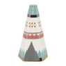 Een vaas is meer dan een omhulsel voor vazen, de juiste vaas geeft namelijk sfeer. Deze vaas in de vorm van een tipi tent is een mooie zomerse toevoeging aan jouw interieur. Zelfs zonder bloemen erin! De vaas is 20 cm en hoog en is gemaakt van keramiek. combineer de vaas met het wat grotere exemplaar en de houten tipi tent voor een speels geheel.