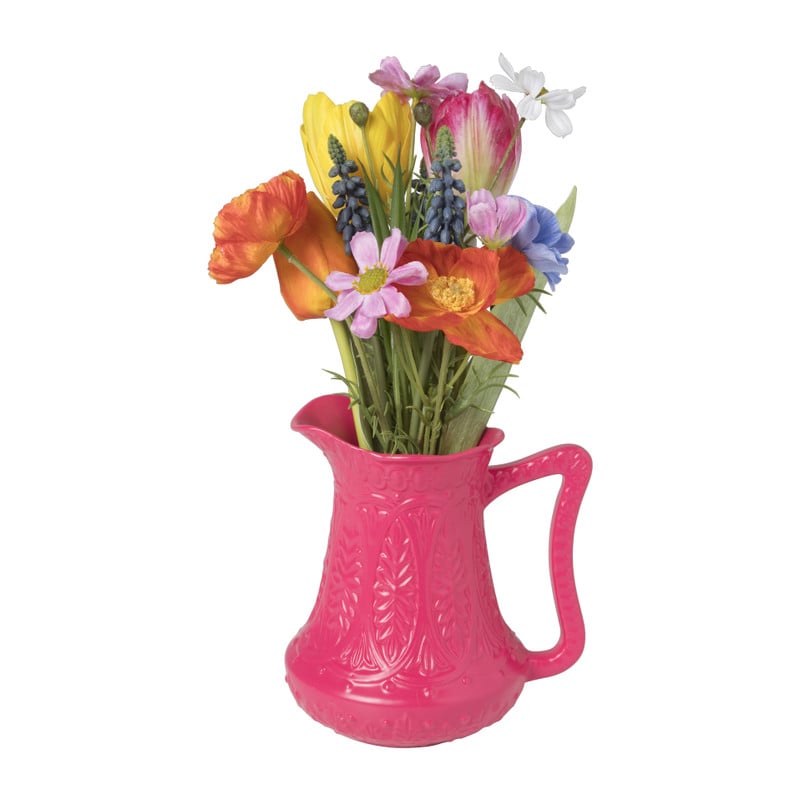 Vaasje met bloemen - donker roze - ø17x30 cm