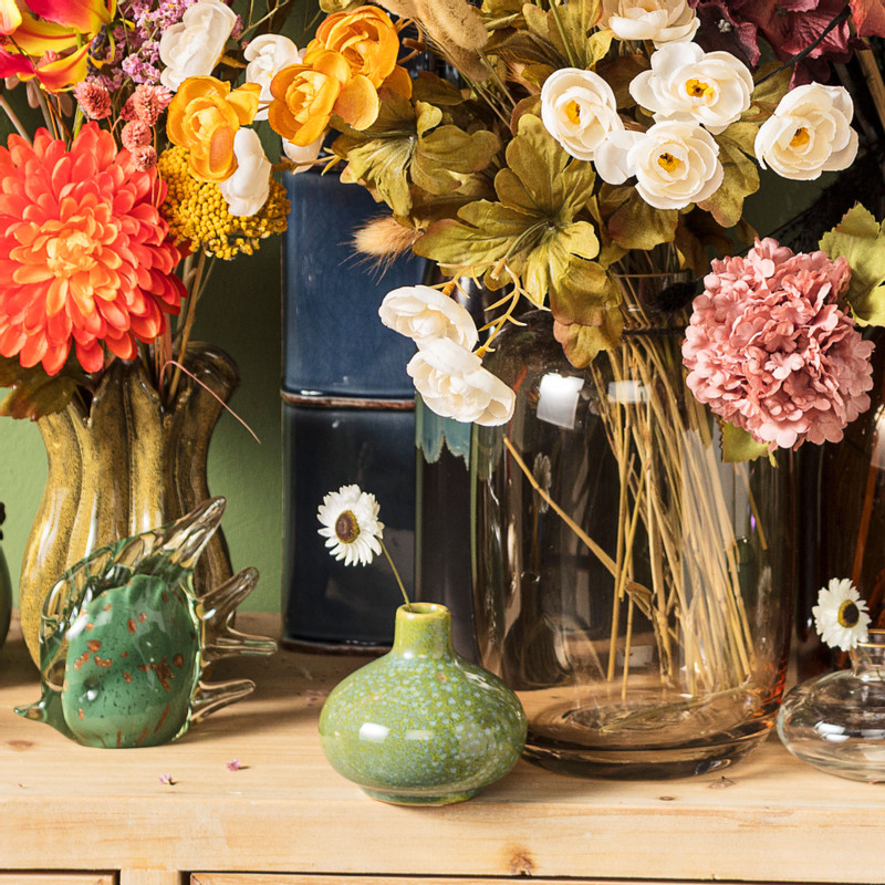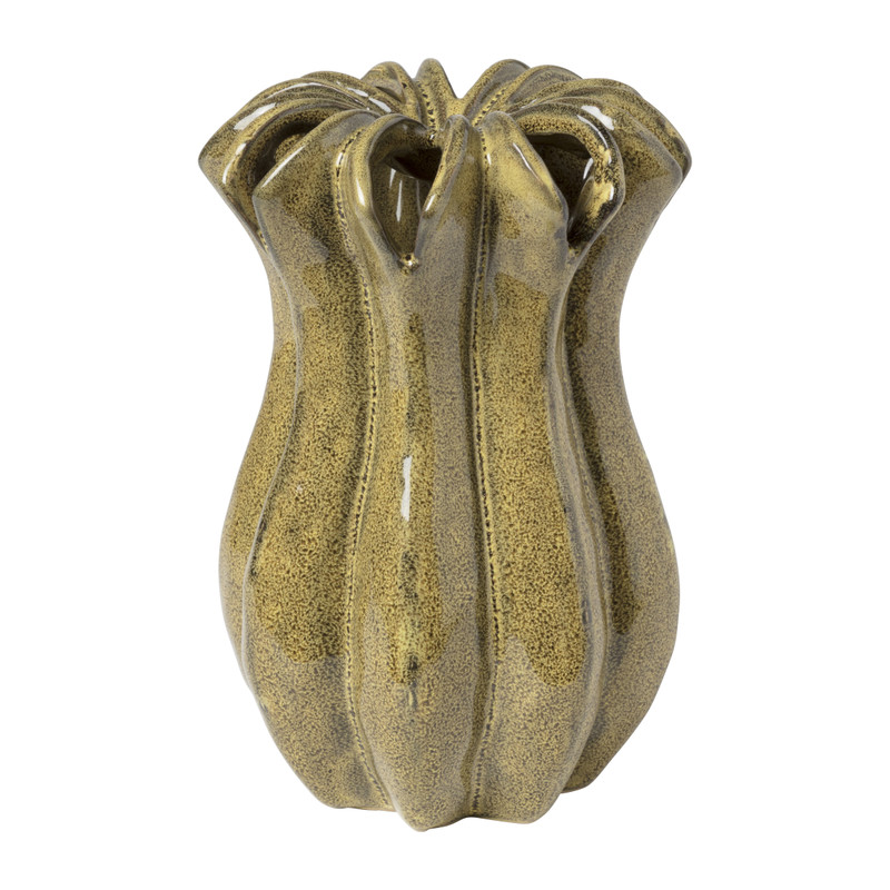 Hoe leuk is dit kleine vaasje dat lijkt op sterfruit? Combineer het groene vaasje met andere vaasjes en plaats hierin kleine bloemetjes. Of vul het vaasje met groene takjes voor een luchtige uitstraling. De diameter is 10.5 cm en de hoogte is 17 cm.