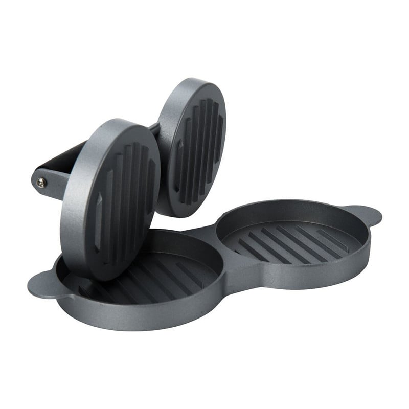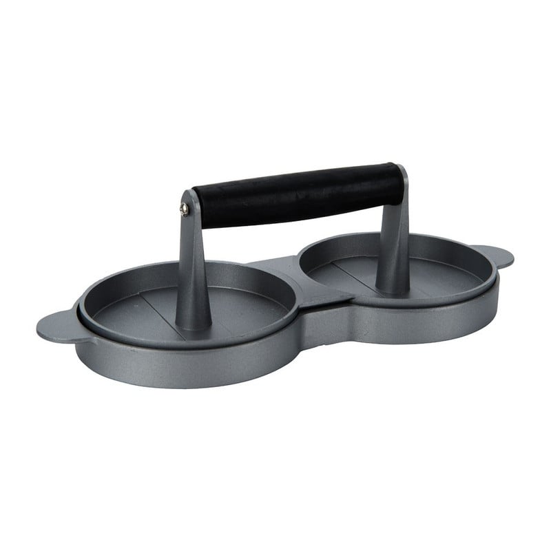 De lekkerste hamburgers maak je zelf met deze hamburgerpers voor 2 hamburgers. De pers is gemaakt van aluminium heeft een handvat met anti-slip laag, zodat deze niet uit je handen glijdt. De burger kun je na het persen op de grill of barbecue leggen, zonder dat deze uit elkaar valt. De pers is geschikt voor 2 hamburgers met een diameter van 11 cm.