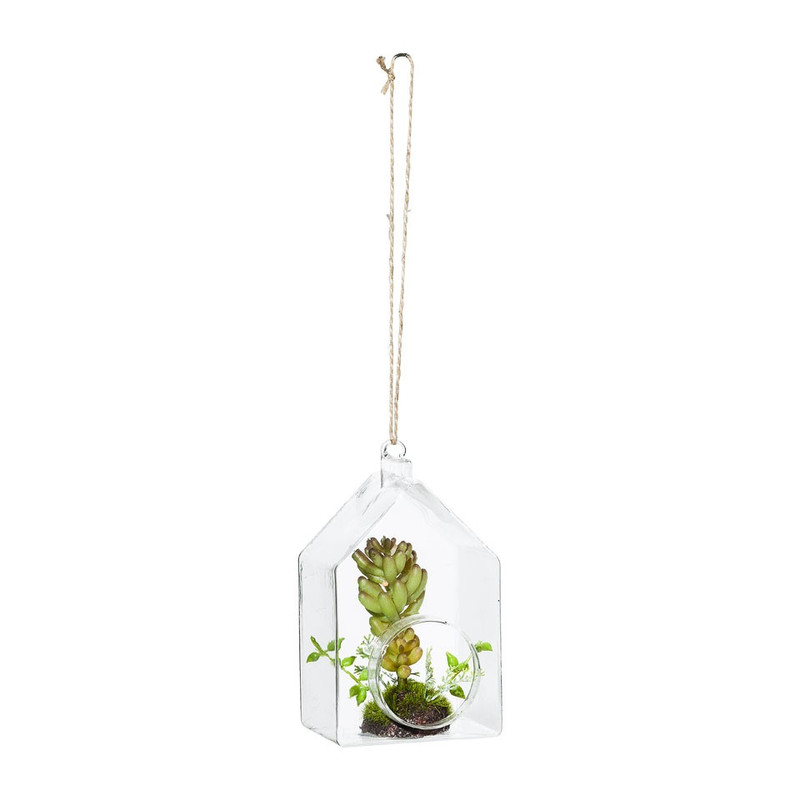 Decoreer jouw huis met dit super leuke minimalistische vetplantje. Schattig! Niet alleen de grote cactussen zijn tegenwoordig erg populair, ook de kleine plantjes doen het erg goed! Dit vetplantje in een klein huisje is super subtiel en apart. Heel tof om je collectie planten aan te vullen met deze accessoire, maar ook heel tof om het huisje als eyecatcher op je dressoir te zetten. De vetplant is van kunststof, dus je hoeft ook niet bang te zijn dat je hem verkeerd verzorgt. Handig!