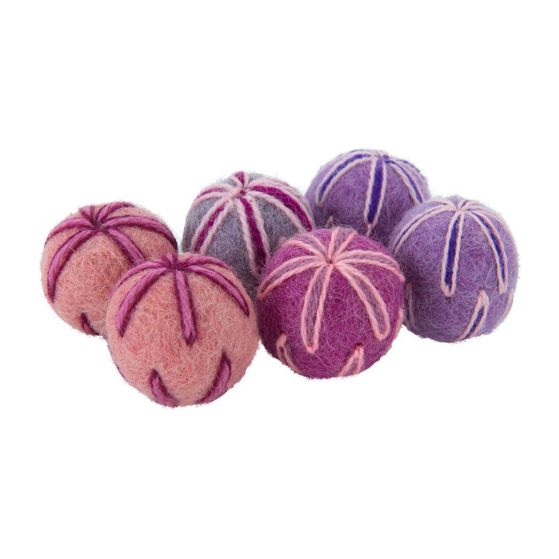 Vilt balletjes gedecoreerd - roze/paars - set van 6