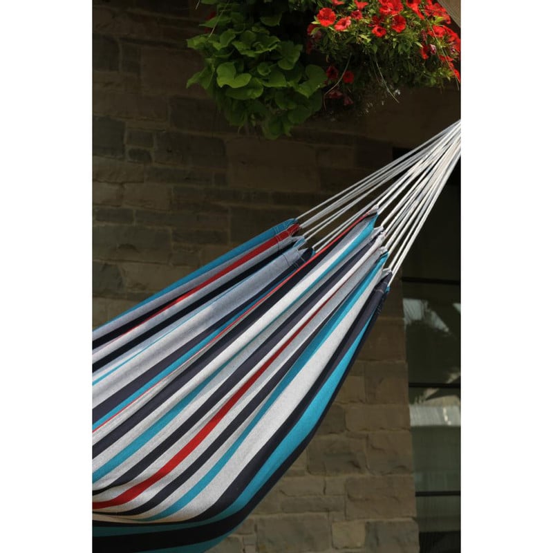 Deze grote Braziliaanse hangmat is zeer geschikt voor een dutje op een warme zomeravond. Prachtige kleuren maken deze hangmat het hoogtepunt van de tuin. De hangmat is gemaakt van 100% katoen om het comfort van binnenshuis te geven, terwijl je geniet van het levendige buitenleven. De dicht geweven en duurzame stof is namelijk lekker zacht voor de huid.