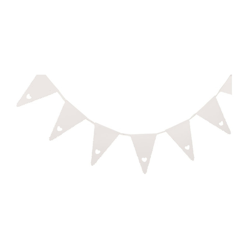 Wil jij het bruidspaar verrassen met een mooi versierde feestlocatie? Gebruik dan deze vlaggenlijn voor een romantisch tintje. De slinger is 3 meter lang en is gemaakt van papier. Onderin de vlaggetjes is een hartje uitgedrukt. Dit ziet er erg romantisch uit! • Gemaakt van papier • 3 meter lang
