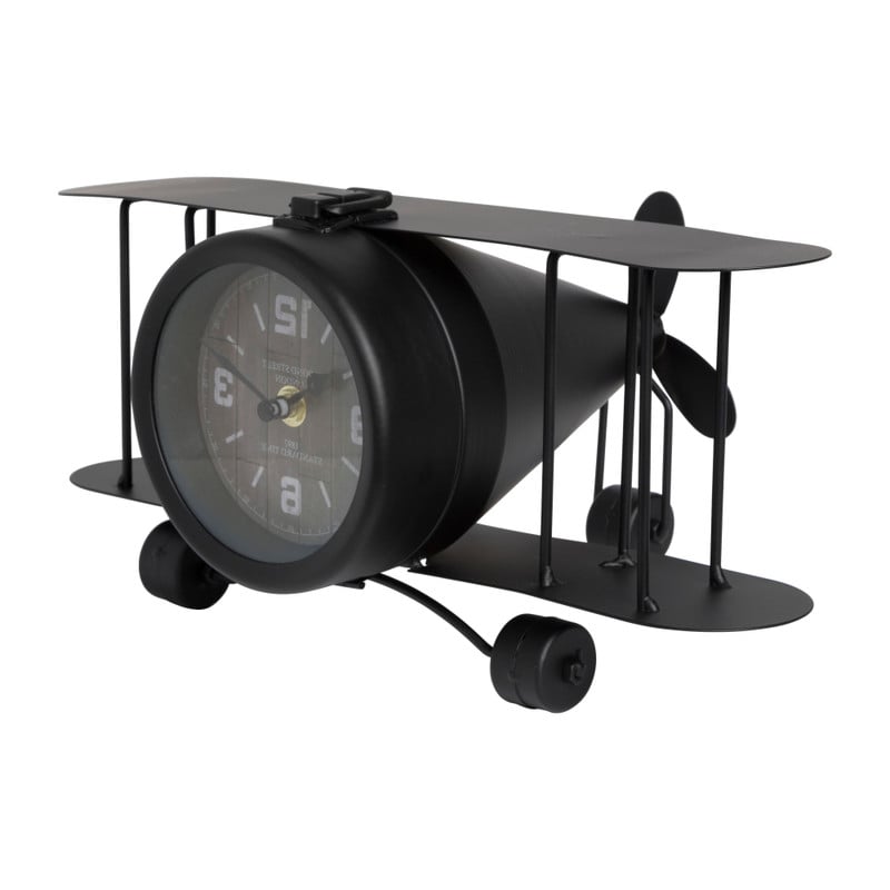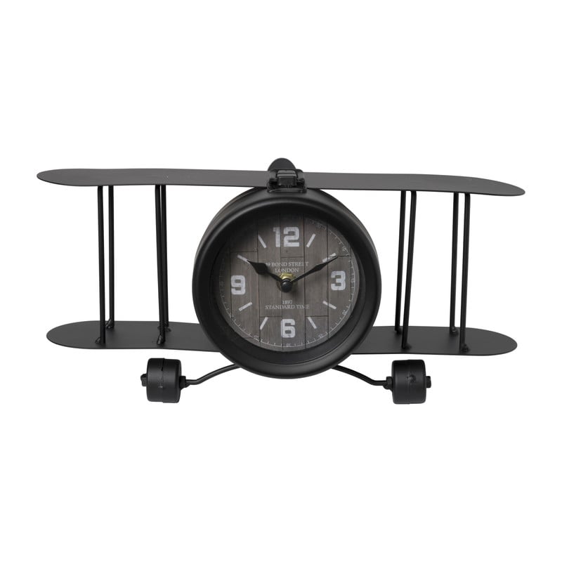 Vliegtuig klok - metaal - zwart - 17x33x21 cm