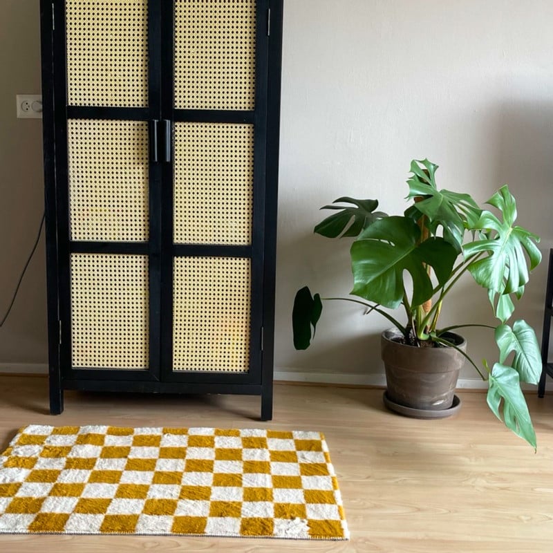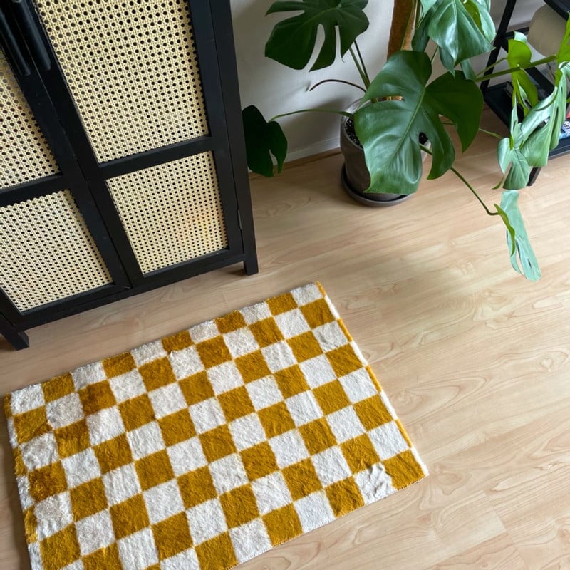 Heb jij Vloerkleed checks - geel/wit - 60x90 cm? Schrijf een review!