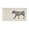 Hoe leuk is dit vloerkleed? Wij zijn er helemaal weg, zeker door de luipaard print! Het vloerkleed is naturel kleurig en aan beide uiteindes zitten speelse franjes. Het kleedje brengt sfeer in de badkamer of (kinder)slaapkamer. De afmeting is 60x90 cm.