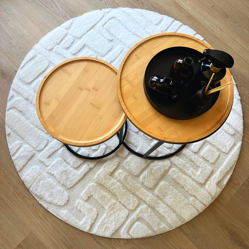 Geef je interieur een warme en natuurlijke uitstraling met dit witte vloerkleed. Het subtiele patroon en de neutrale tint maken het een veelzijdige toevoeging aan elke ruimte. Ideaal voor in de hal, slaapkamer of onder een kleine tafel in de woonkamer. Het kleed heeft een diameter van 120 cm en is gemaakt van polyester, waardoor het zacht aanvoelt en tegelijkertijd duurzaam is. Creëer een knusse en stijlvolle sfeer met dit prachtige vloerkleed!