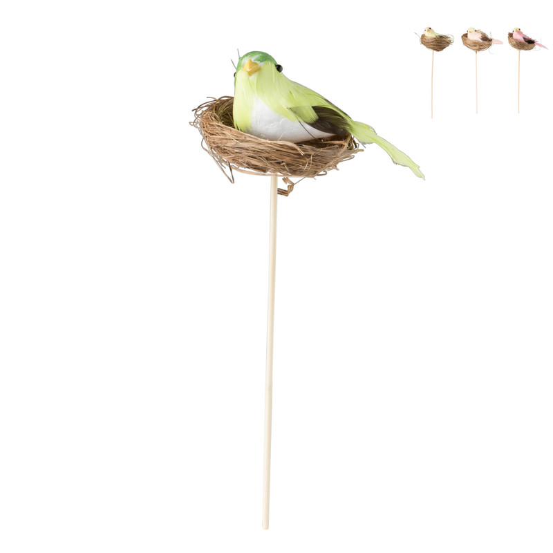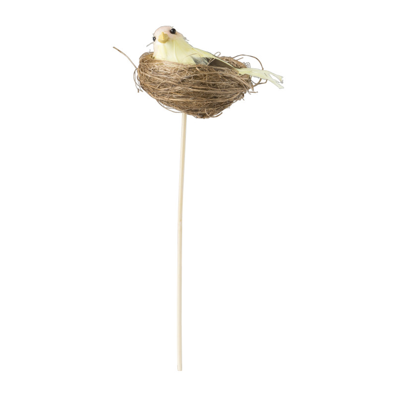 Met dit leuke vogelnestje op stok creëer je in een handomdraai een gezellige paassfeer. Het vogelnestje op stok is gemaakt van bamvoe en veren, verkrijgbaar in diverse varianten en heeft een hoogte van 24 cm, een breedte van 11 cm en een diepte van 7 cm.