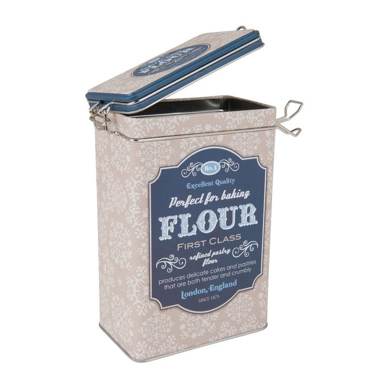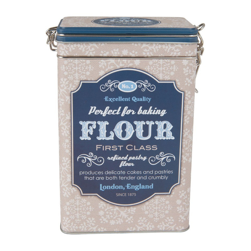Bewaar je bloem op een leuke manier in dit retro blik met goed afsluitbare deksel. Op het blik staat een retro opdruk in het blauw met een crème kleuren. De afmeting is 7.5x12x19 cm en deze is gemaakt van staal. De clip zorgt ervoor dat je het blik super goed kunt afsluiten. Combineer met de andere blikken uit deze serie om er een mooi geheel van te maken.