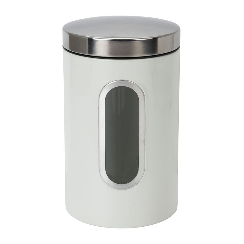 Deze metalen, crèmekleurige voorraadblikken hebben een goed afsluitende deksel en zijn er in verschillende formaten. De inhoud is altijd goed zichtbaar danzij het transparante venster. De goed afsluitende deksel zorgt ervoor dat de inhoud langer vers blijft. Ideaal als je weinig ruimte in je keuken hebt en rijst, koffie of koekjes op een leuke manier op je aanrecht wilt zetten. Ze zijn niet alleen praktisch, maar ook mooi! Het strakke design van de potten past in elk huishouden.