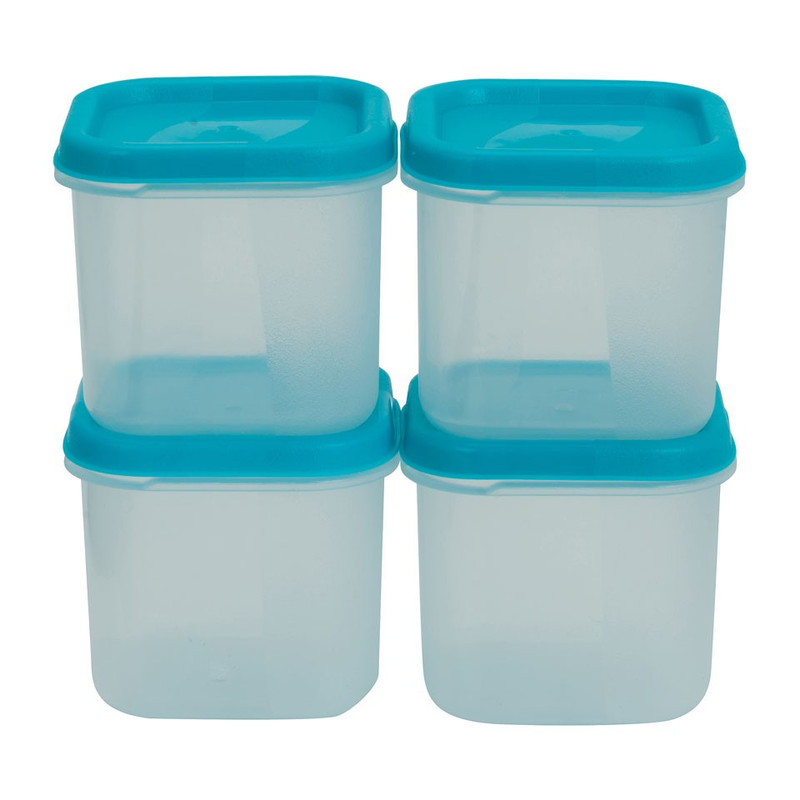Handige mini voorraaddoosjes in een set van vier doosjes. De voorraaddoos is zeer geschikt voor het opbergen en bewaren van etenswaren. Ze hebben een inhoud van 0,15 liter. Je kan de voorraaddoosjes in de koelkast, vriezer en magnetron gebruiken. Ideaal om sausjes, kliekjes of kleine kantoorspulletjes in te bewaren. En na gebruik doe je ze eenvoudig in de vaatwasser.