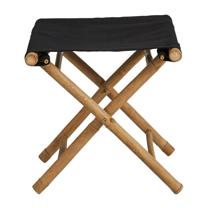 Dit leuke vouwkrukje zet je eenvoudig neer, waar je hem ook nodig hebt. Het krukje is gemaakt van bamboe en heeft een zwart zitje van canvas. Bamboe is een super duurzaam materiaal, want wist je dat sommige bamboesoorten tot wel 1 meter per dag groeien? Het krukje heeft een afmeting van 54x45x35 cm