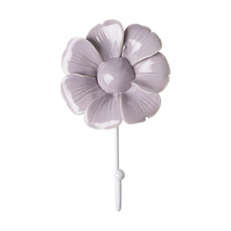 Geef je muur een speelse en functionele update met deze wandhaak in de vorm van een bloem. Het levendige paarse en de bloemenvorm zorgen voor een vrolijke uitstraling, terwijl de afmetingen van 12x7.5x3.3 cm het de ideale haak maken voor jassen, tasjes of accessoires. De haak is gemaakt van keramiek en kan gemakkelijk opgehangen worden aan een spijker.