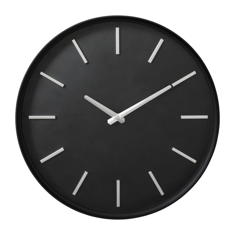 Tijd voor een nieuwe klok? Ga voor deze moderne wandklok met witte wijzers en een zwarte wijzerplaat! Hang 'm op de keuken of woonkamer dan weet je altijd hoe laat is het is.