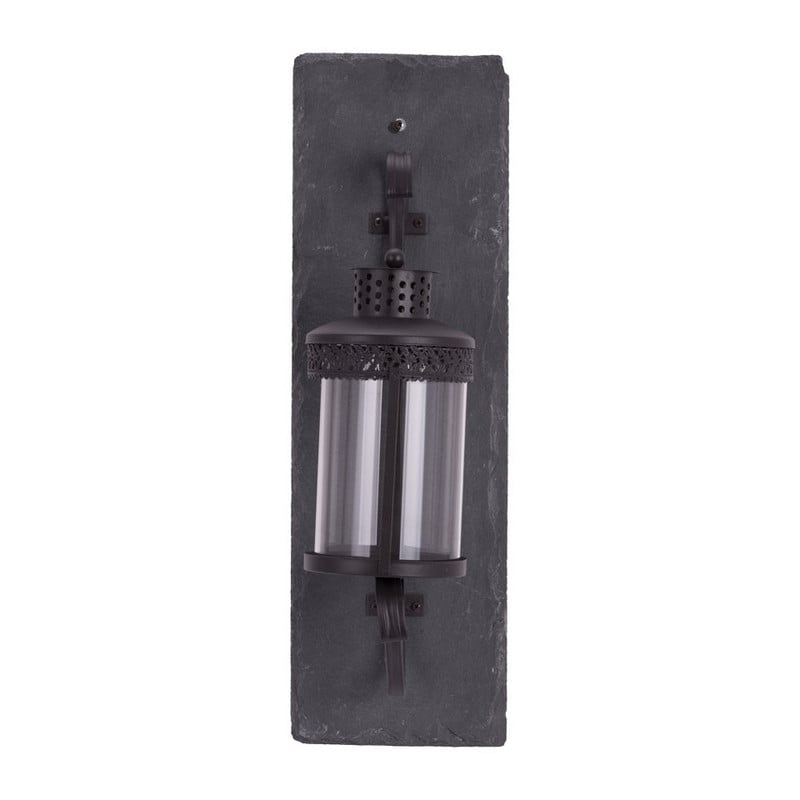 Deze prachtige wandlantaarn op leisteen siert de muur en heeft een prachtige uitstraling. De lantaarn heeft een sierlijke kaarshouder met glazen windglas. Je hangt het leisteen eenvoudig op aan een schroef in de muur. De lantaarn is perfect voor sfeervolle avonden buiten. Er past met gemak een stompkaars in met een diameter van 8 cm en een hoogte van 10 centimeter. Een kleinere kaars kan natuurlijk ook. Hang ‘m op een mooie plek en creëer een fijn sfeer.