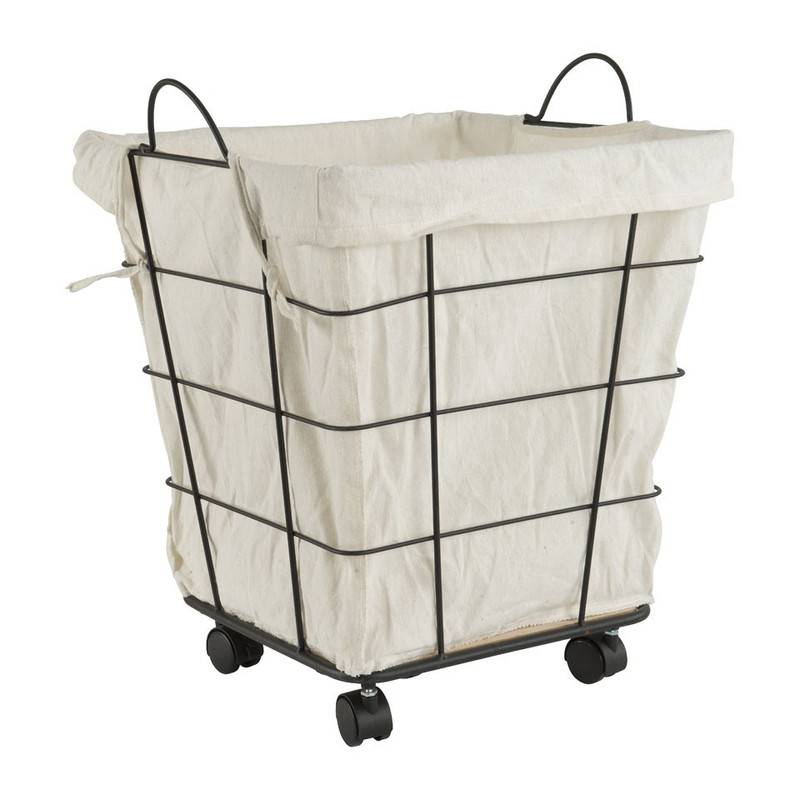 Zoek je nog een wasmand in een industriële stijl? Dan is dit het perfecte exemplaar! Deze wasmand heeft zelfs wieltjes waardoor deze makkelijk te verplaatsen is. De katoenen zak zit met touwtjes vast aan de mand zodat deze netjes op zijn plek blijft wanneer je er was in stopt. Ook leuk om te gebruiken in de woonkamer als opbergmand.
