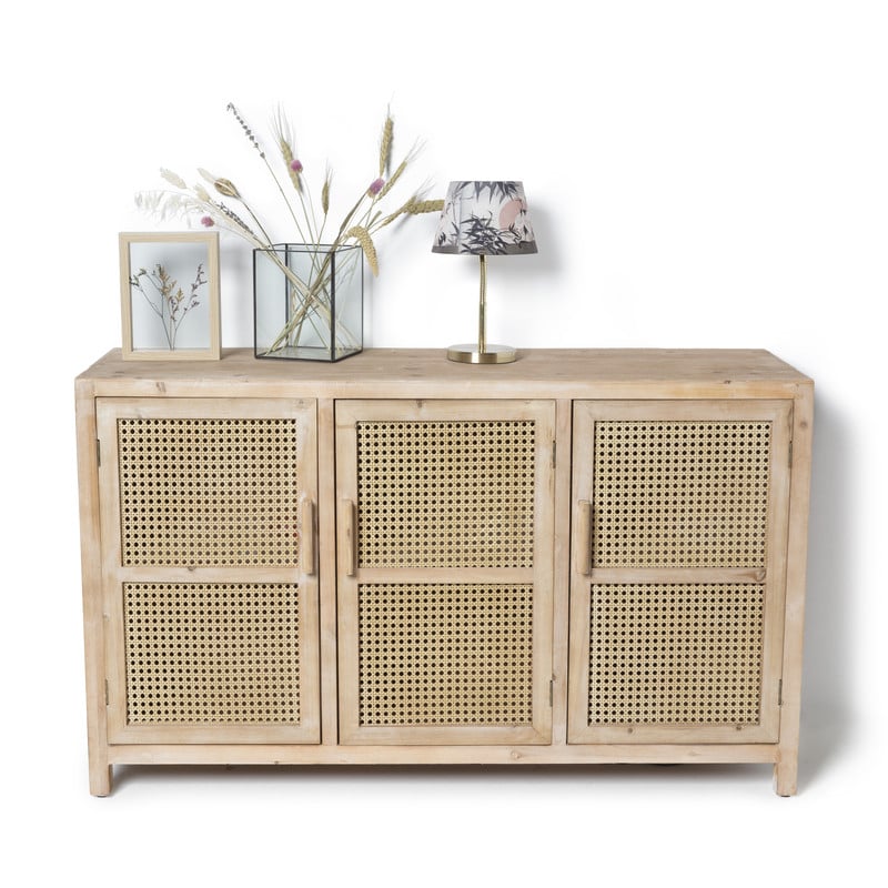 Dit Bandung dressoir met vlechtwerk in de deurtjes staat prachtig in je slaapkamer, woonkamer of in de gang. Decoreer het dressoir met bijvoorbeeld fotolijsten, planten of kaarsen. Dit dressoir is niet alleen mooi, maar ook functioneel en zal een echte eyecatcher zijn in elke kamer.