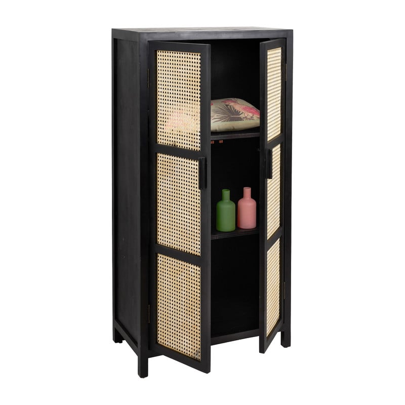 Webbing kast Bandung hoog - zwart/naturel - 140x70x40 cm