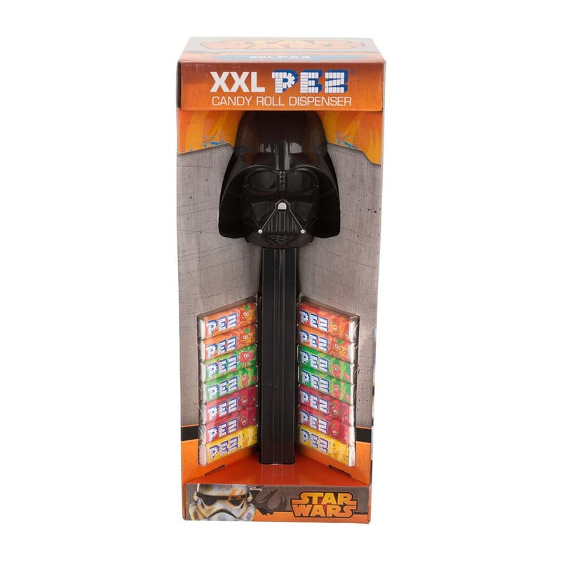 Deze grote en super stoere XXL dispenser Star Wars geeft steeds weer de lekkerste Pez snoepjes! Ken je de grappige Pez dispenser van vroeger nog? Ze zijn weer helemaal in! Door het hoofd van Darth Vader te bewegen schiet er een rolletje Pez snoepjes uit. Superleuk voor kleine kinderen en voor volwassenen die zich nog een beetje kind voelen :-) De XXL Pez dispenser Darth Vader heeft een leuke cadeauverpakking en bevat 14 snoeprolletjes. De diameter van de XXL dispenser is ca. 11 cm, de hoogte is 30 cm. Wil je een snoepdispenser kopen, koop ‘m dan voordelig bij Xenos!